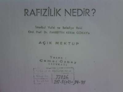 Rafizilik Nedir? - Istanbul Valisi ve Belediye Reisi Ord. Prof. Dr. Fahrettin Kerim Gökay’a Açik Mektup
